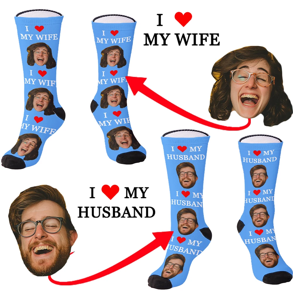 Modische, individuell gestaltbare Gesichtssocken zum Selbermachen für Ehemann und Ehefrau, Röhrensocken zum Valentinstag, das beste Geschenk für Ehemann und Ehefrau