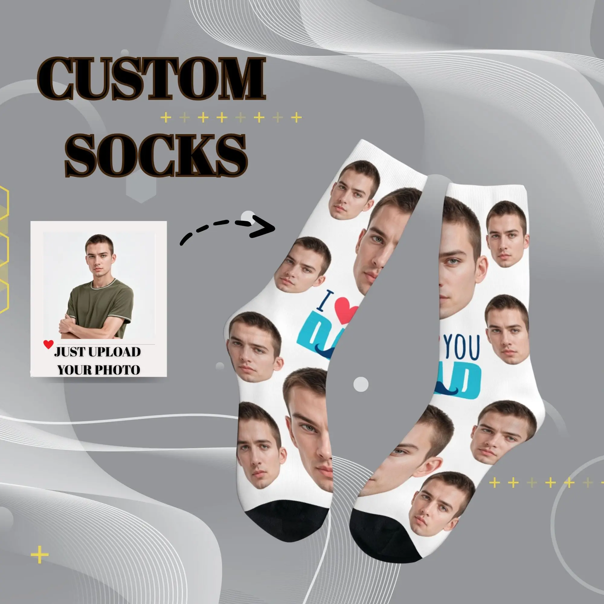 Lustige All-Over-Crew-Socken mit individuellem Gesicht, einmalig, Vollgesichtsdruck, Stand-Out, tägliches Tragen und Gag-Geschenk für Familie und Freunde
