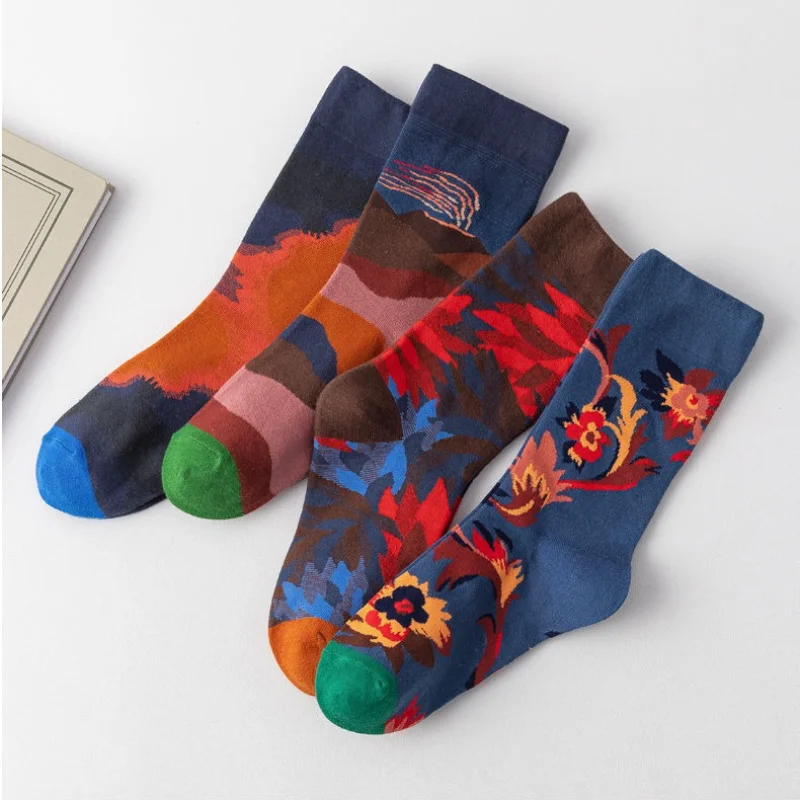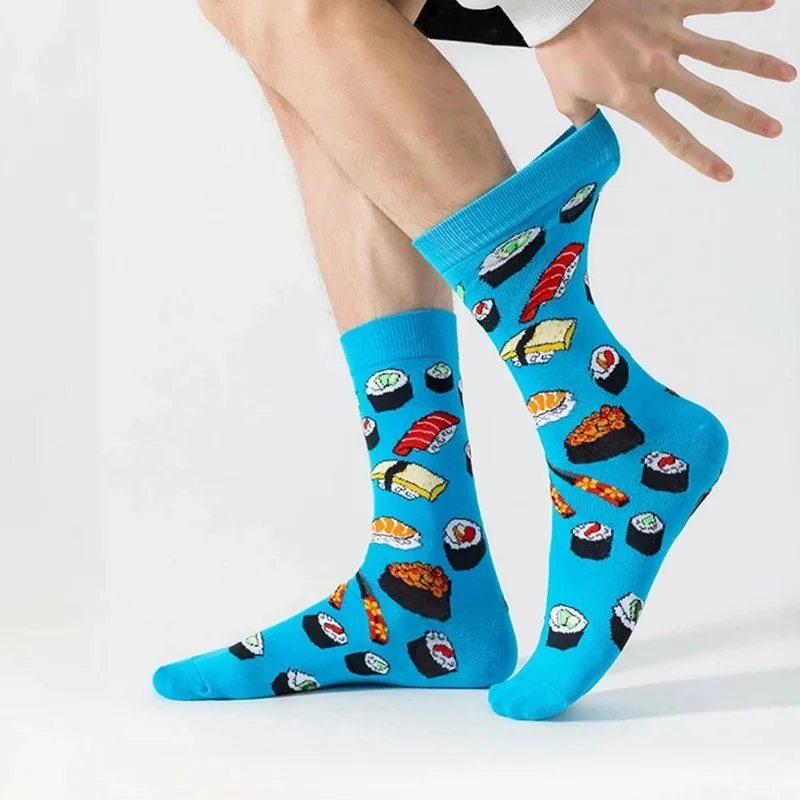1 Paar Neuartige Lebensmittel-Socken für Männer Kreative Hamburger Pommes Sushi Muster Wadenlange Socken Lustiges Geschenk für Essensliebhaber Blau Schwarz Neu 2026