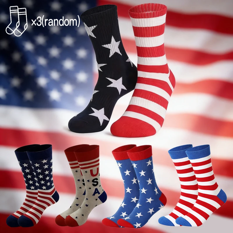 3 Paar modische Unisex-Socken für die vier Jahreszeiten zum amerikanischen Unabhängigkeitstag, farblich abgestimmt auf die amerikanische Flagge/gestreifte lange Sportsocken