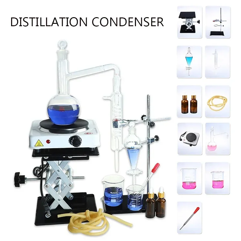 500/1000 ml Destillationsgerät für ätherische Öle, Laborglaswaren-Sets, Dampf-Wasserdestilliergerät, Luftreiniger-Sets mit elektrischem Heißbrenner