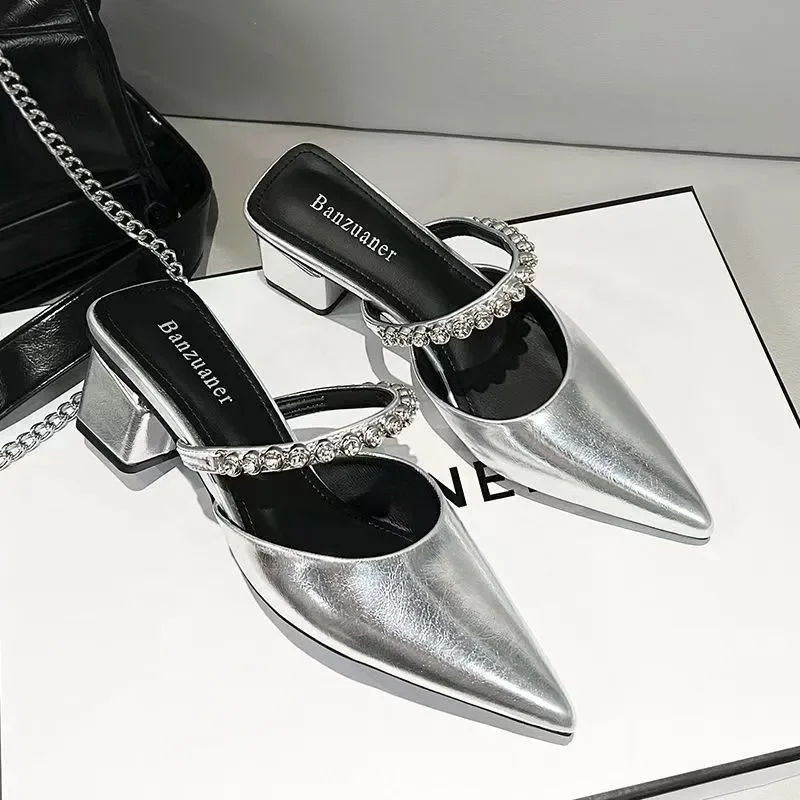 Zapatos de Mujer Damen-Schuhe, niedlich, süß, leicht, silberfarben, Frühling, Slip-On-Schuhe mit quadratischem Absatz, Damen-Freizeitschuhe mit bequemem Absatz in Schwarz, C605