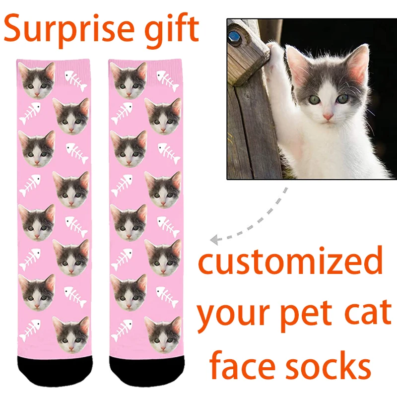 Maßgeschneiderte Gesichtssocken, 3D-Druck, exklusiv für Ihr Haustier, Katzengesichtssocken, modische und neuartige Überraschungsgeschenke für Familie und Freunde