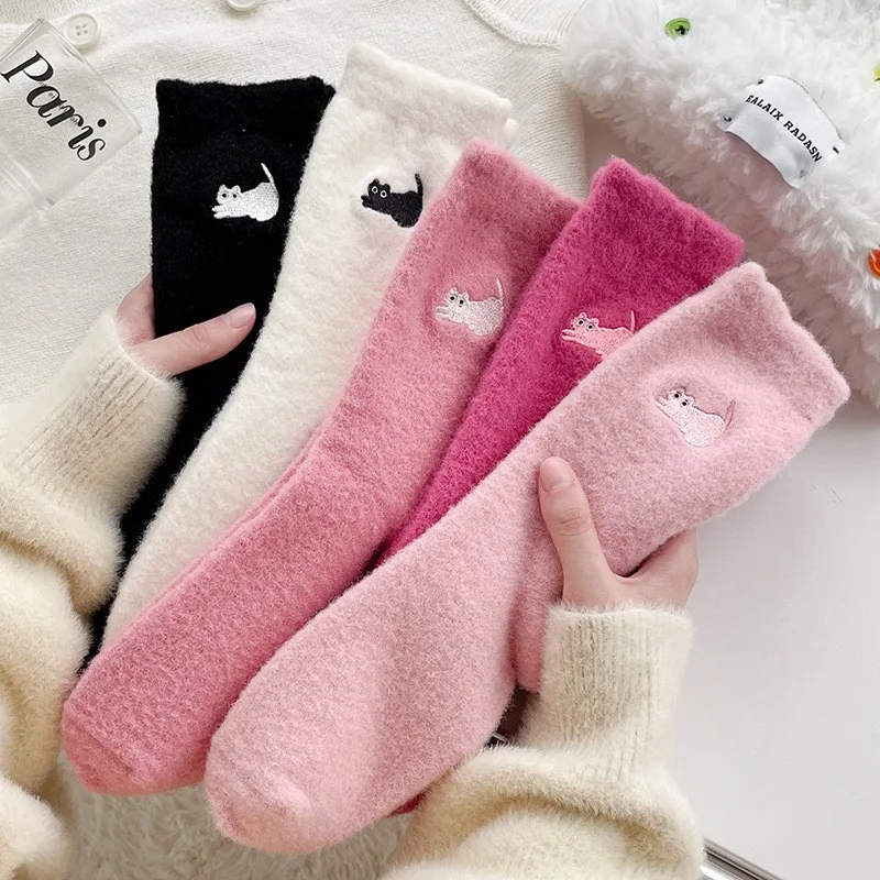 3 Paar Damen-Socken aus Wolle für Herbst und Winter, Warme Schneesocken in Markron-Farben, Dick Plüschig, Weich, für Nach der Geburt, Bodensocken, Schlafsocken
