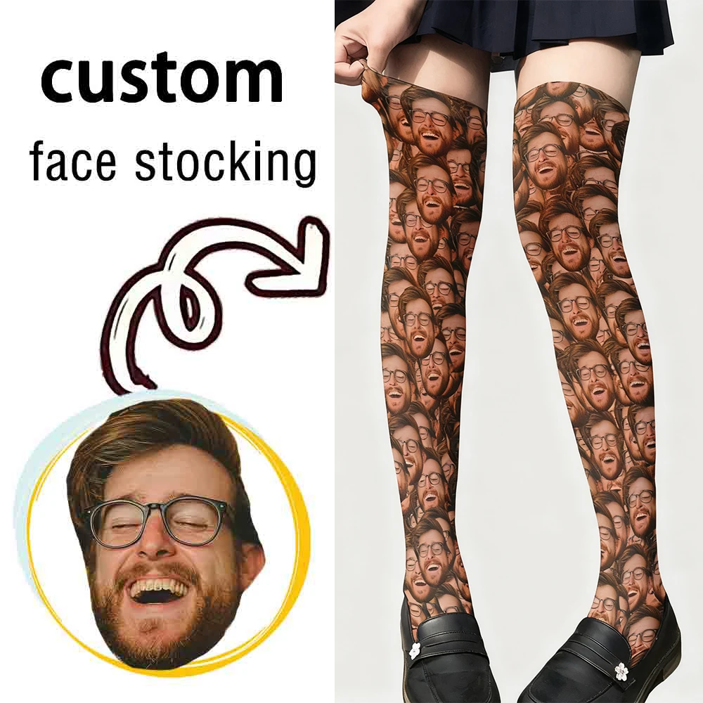 Maßgeschneiderte, personalisierte Oberschenkelstrümpfe zum Selbermachen, lustige Overknee-Socken mit Gesichtsmotiv, Überraschungsgeschenke für Ihre Familie und Freunde