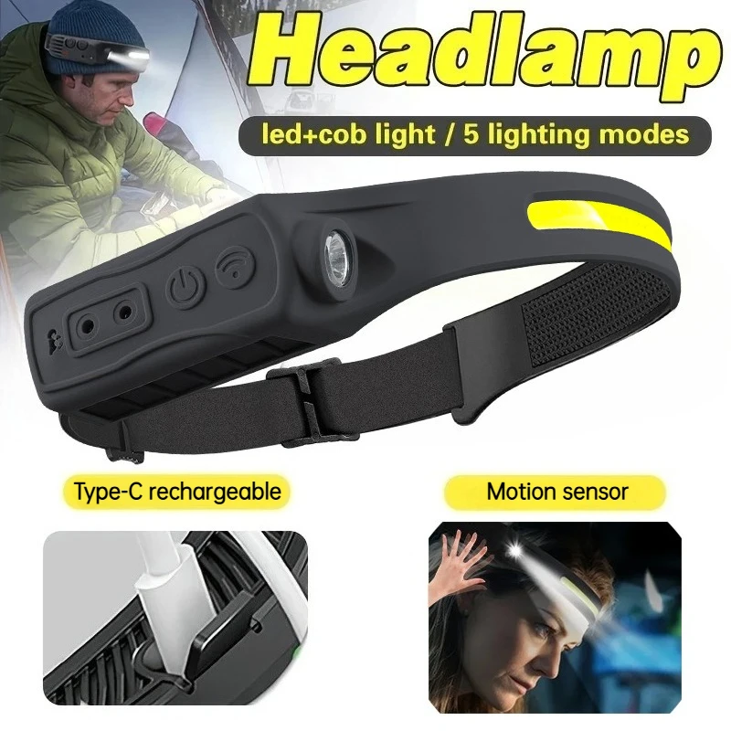 Mini wiederaufladbare leistungsstarke Sensor Scheinwerfer Angeln Camping USB Kopf Taschenlampe COB LED Kopf Licht Taschenlampe Scheinwerfer Front Laterne