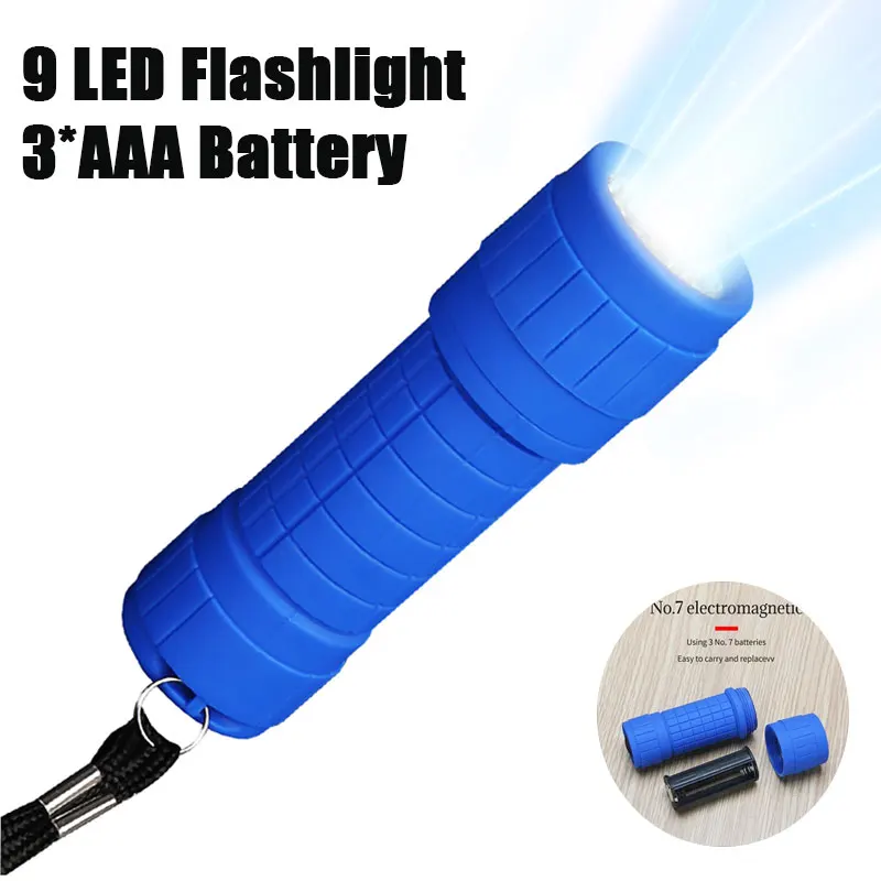 Tragbare Mini-Taschenlampe, neun XPE-Lampenperlen, starke Beleuchtung mit 3 * AAA-Batterien, Taschen-Notfall-Taschenlampe für den Außenbereich, Kindergeschenke