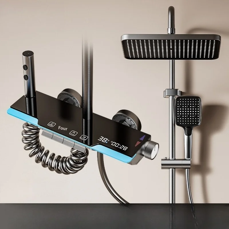 Aluminium Duschset Digitalanzeige Duschset Klavierknopf mit Umgebungslicht Badezimmerarmaturen Duschkopf Kit