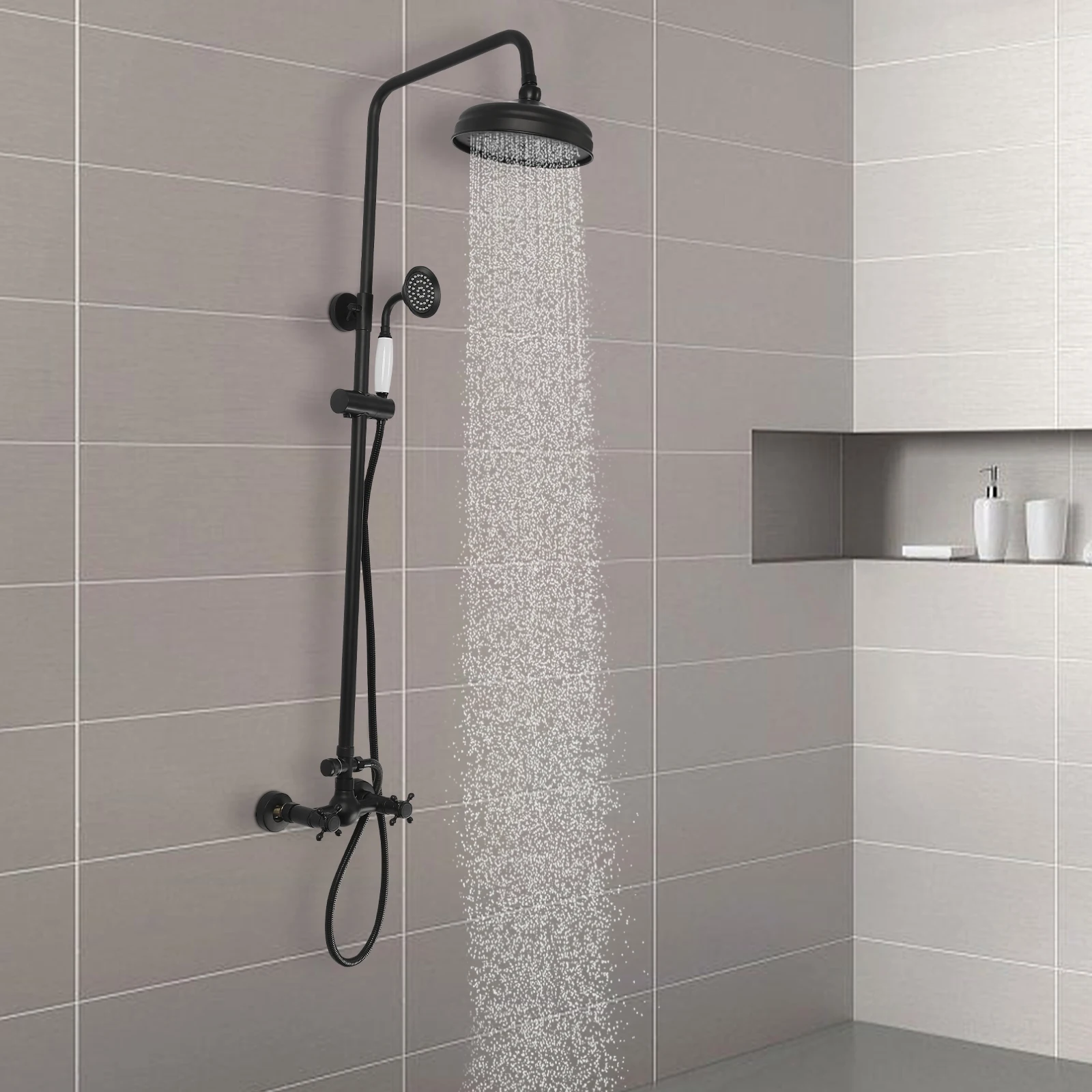 Schwarzes Wandmontiertes Duschset, Brass-Edelstahl-Kupfer-NBR & Polier-Sprühverfahren, ideal für Badezimmer Hotels Clubs