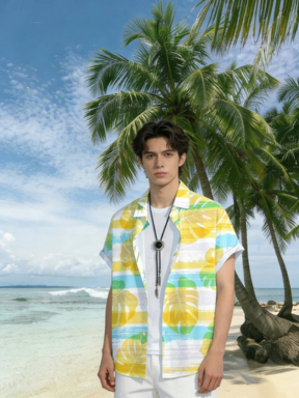Neues Herren-Hawaiihemd mit tropischem Print, Kurzarm, Knopfleiste, lässiges Strandhemd für den Urlaub