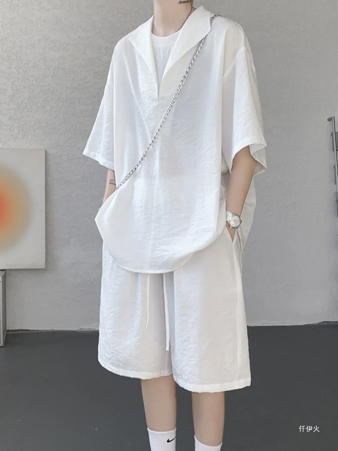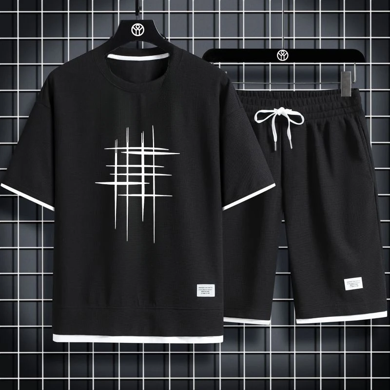 Sommerliches, atmungsaktives Herren-Pullover-T-Shirt und Shorts 2-teiliges Set, Outdoor-Jogging-Strandanzug für Herren mit kurzen Ärmeln, Freizeitanzug