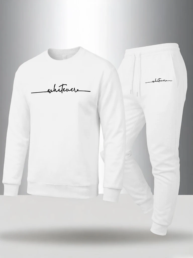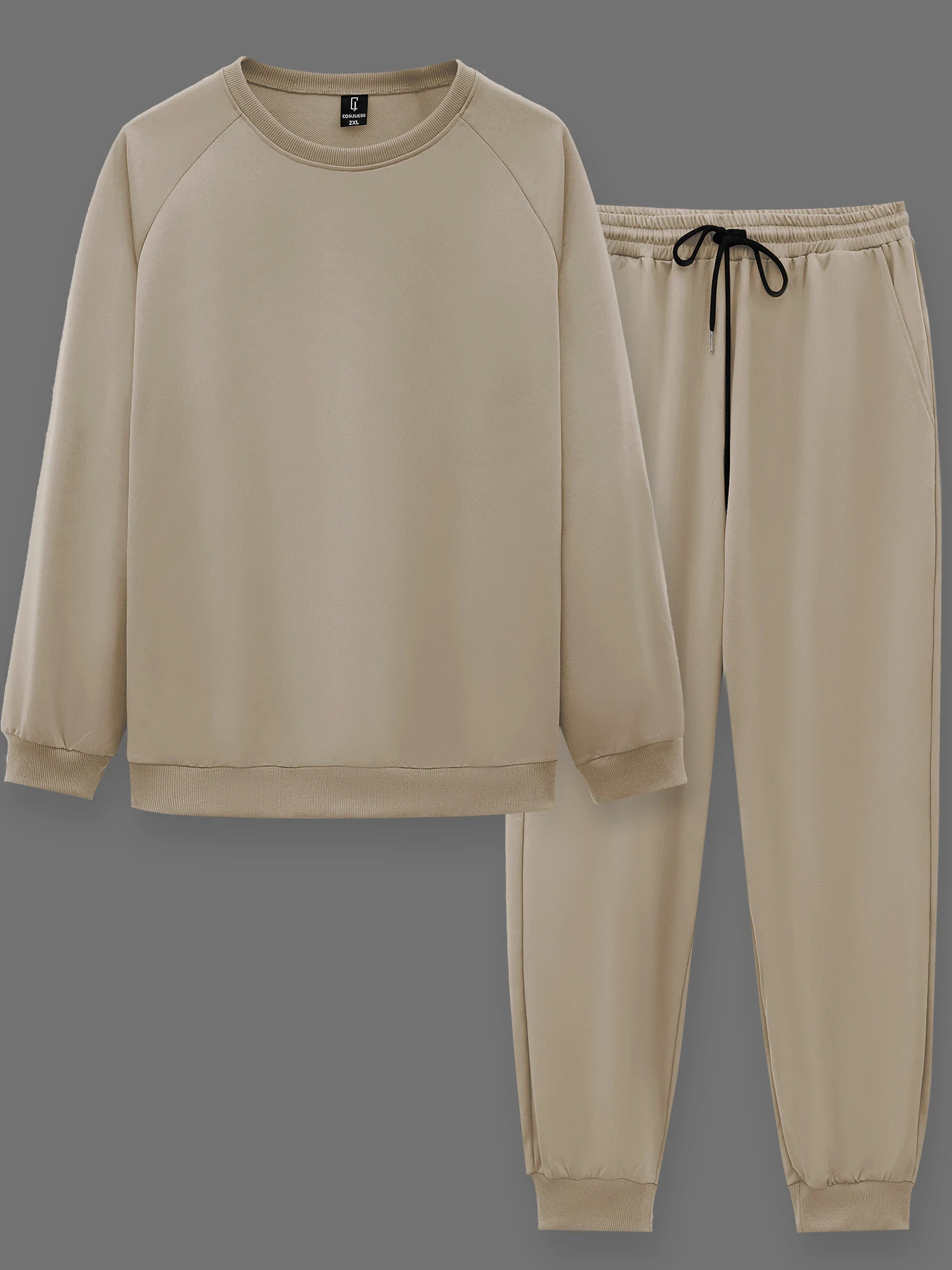Herren Einfarbiges 2-Teiliges Set Rundhals Langarm & Jogginghose Lässiger Trainingsanzug