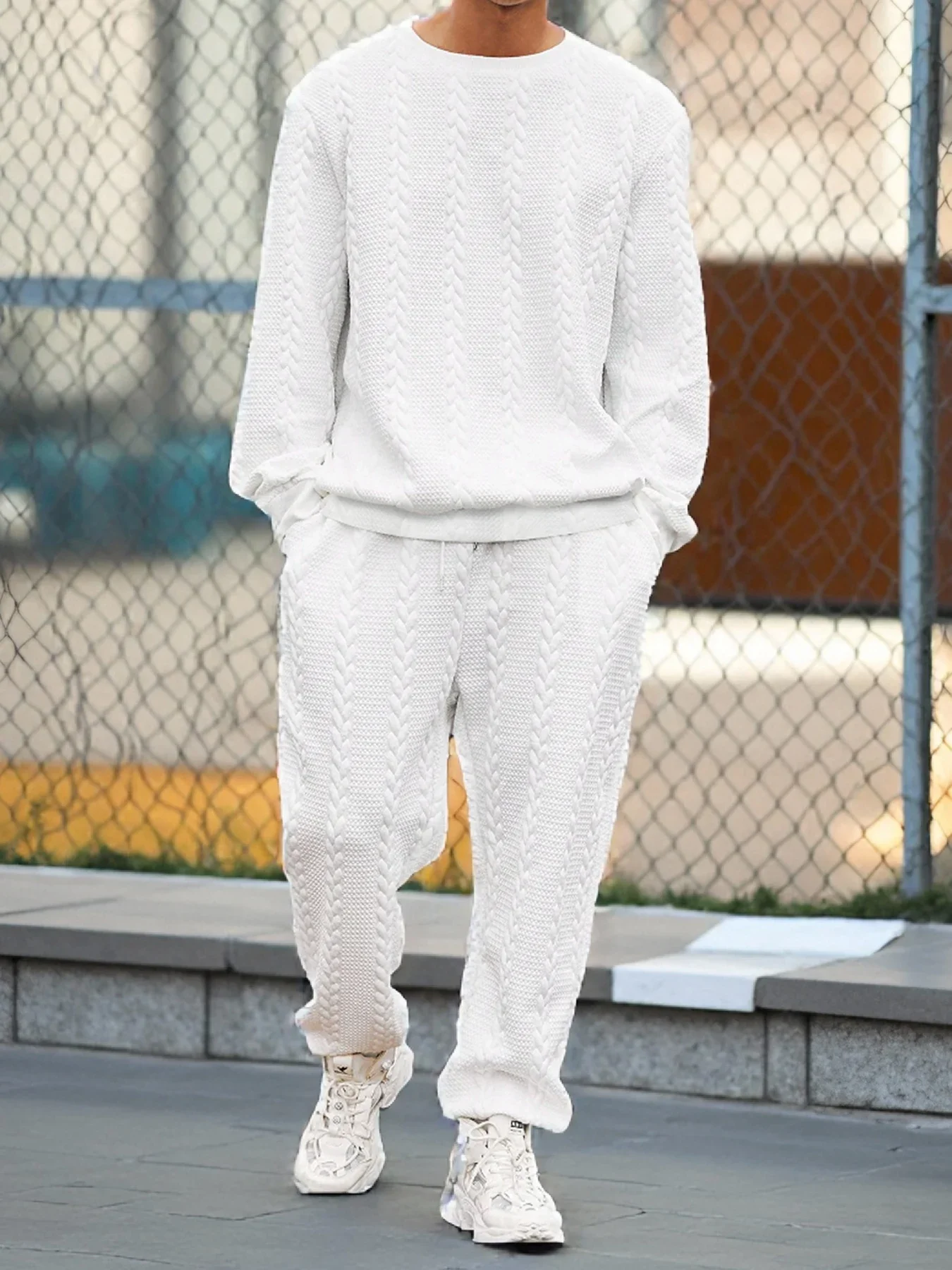 Herren Freizeitkleidung, Locker Sitzender Einfarbiger Pullover & Hose mit Elastischem Bund und Schmal Zulaufendem Bein