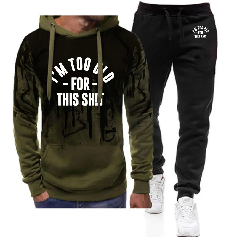 2026 Ich bin zu alt für das hier. Bedruckter Frühlings- und Herbstanzug für Herren mit Farbverlauf, Kapuzenpullover mit Kordelzug und Sport-Langhose