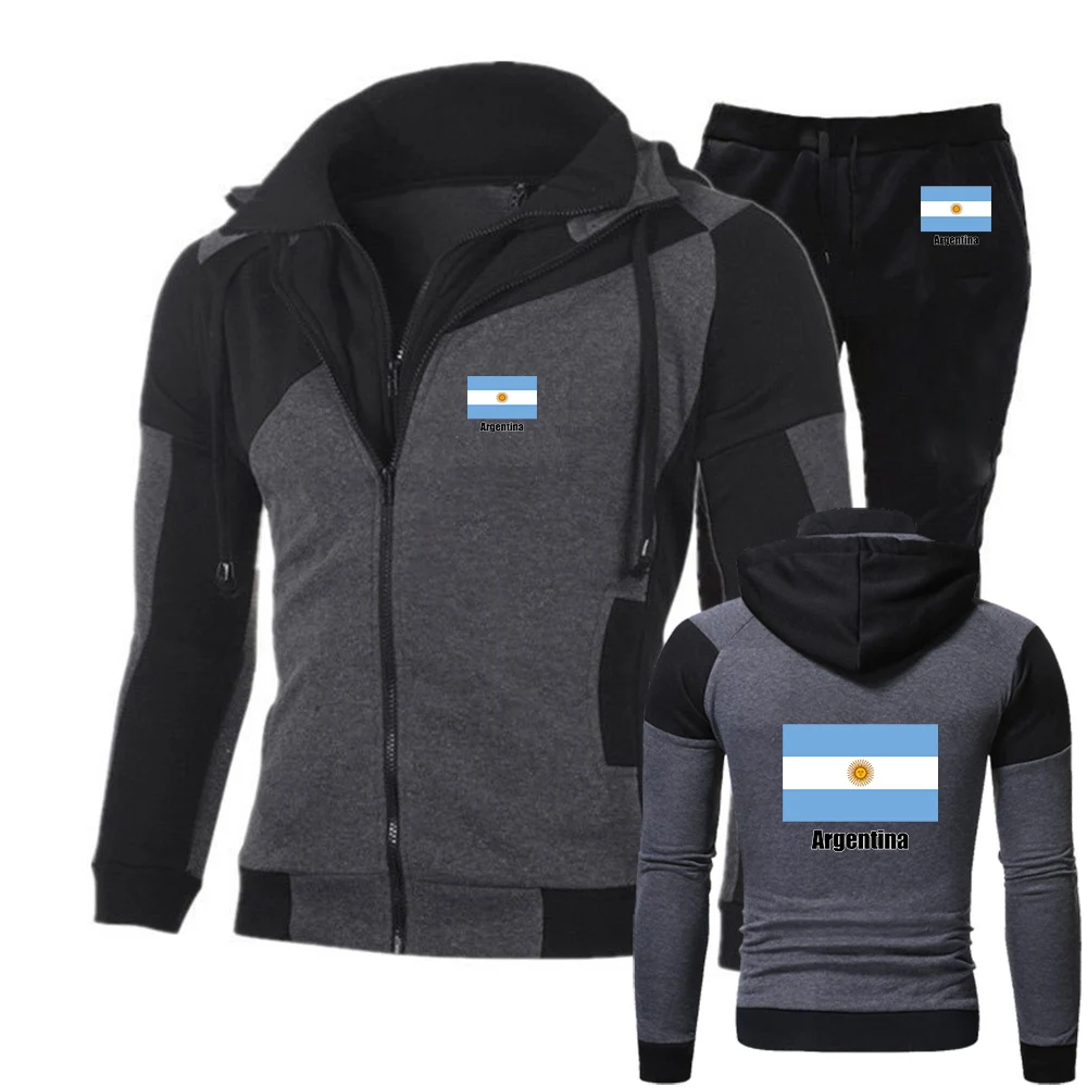 2026 Argentinische Flagge Bedruckter Frühling und Herbst Herren Neuer Fußballteam-Print Diagonaler Reißverschluss Hoodie Lässige Hose Schlichter Anzug