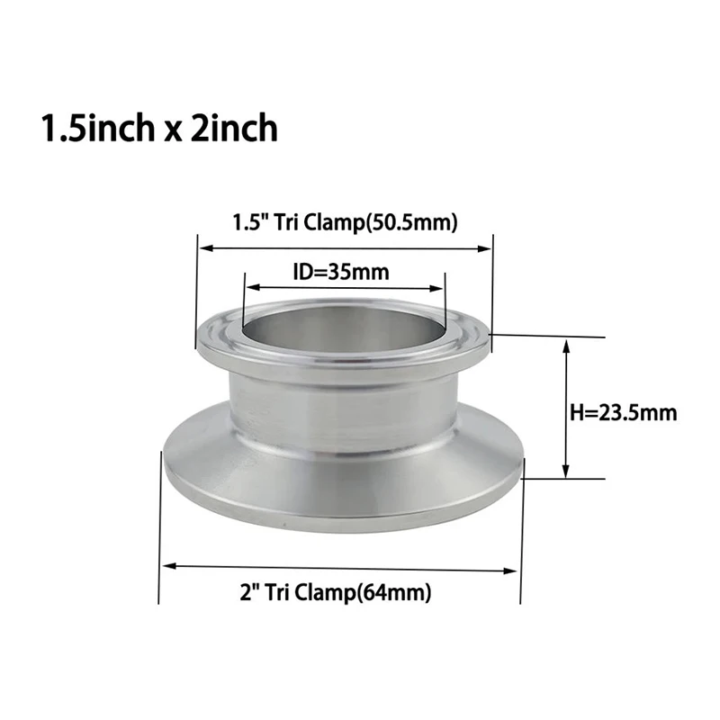 SS304 Edelstahl TC25.4 34 50.5 64mm Ferrule Sanitär-Homebrew-Bierrohrfitting 1.5" 2" Tri-Clamp Reduzierstück Endkappe.5D