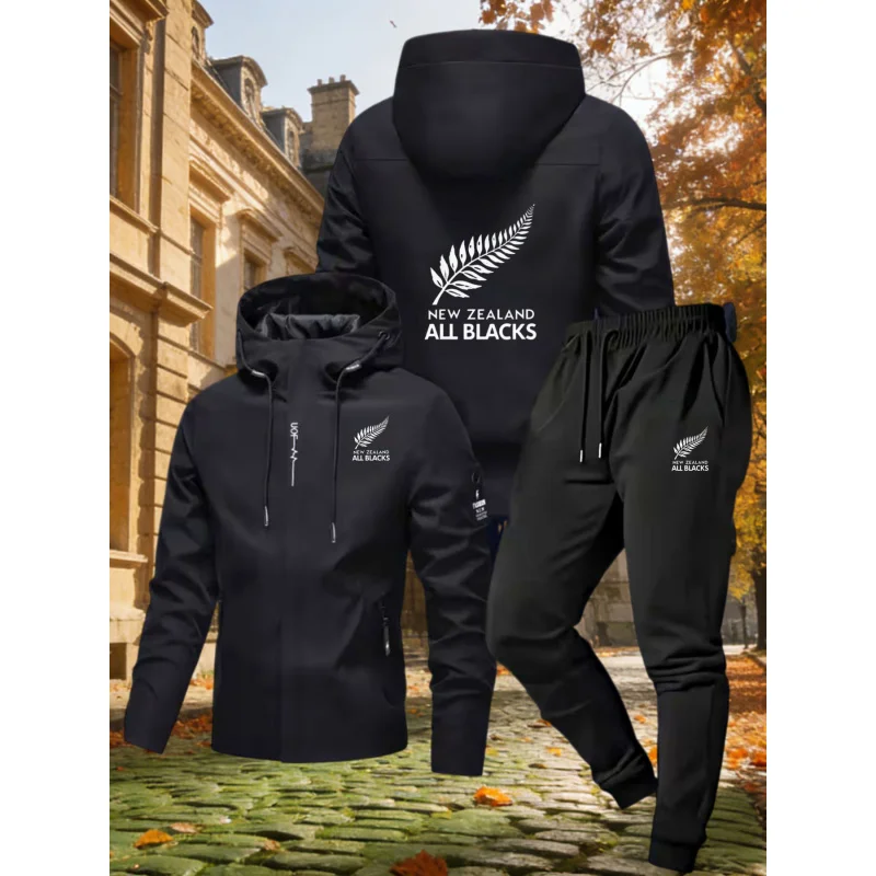 Neuseeland All Blacks Team Emblem Windbreaker und Hose Komfortables Modisches Set