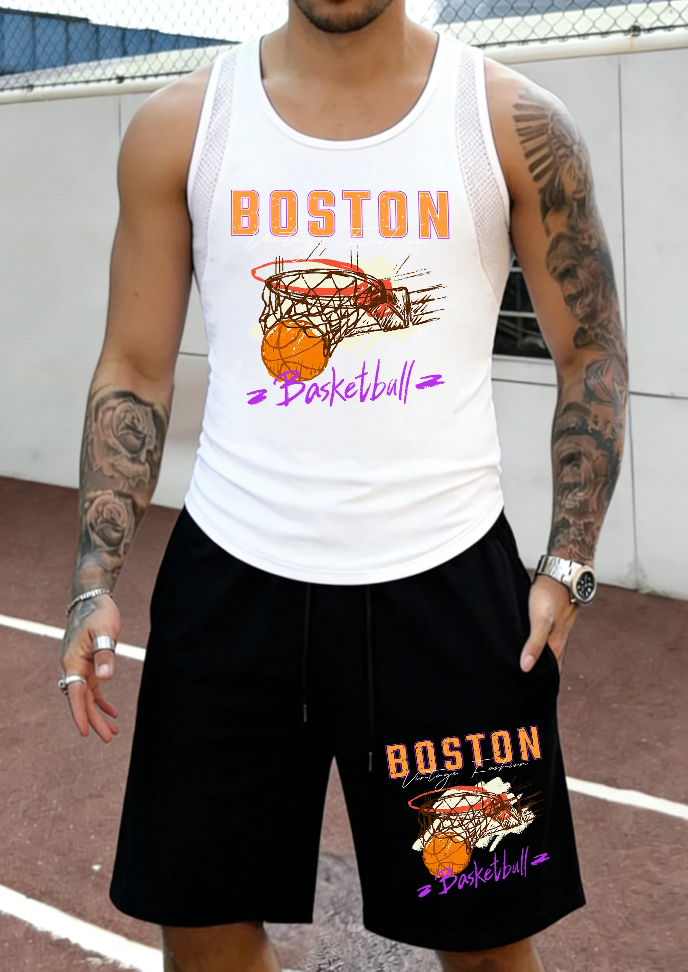 Sommerliches, atmungsaktives, schnelltrocknendes ärmelloses Oberteil und Shorts-Set für Herren. Geeignet für den Einsatz während Fitnessübungen und beim Laufen.