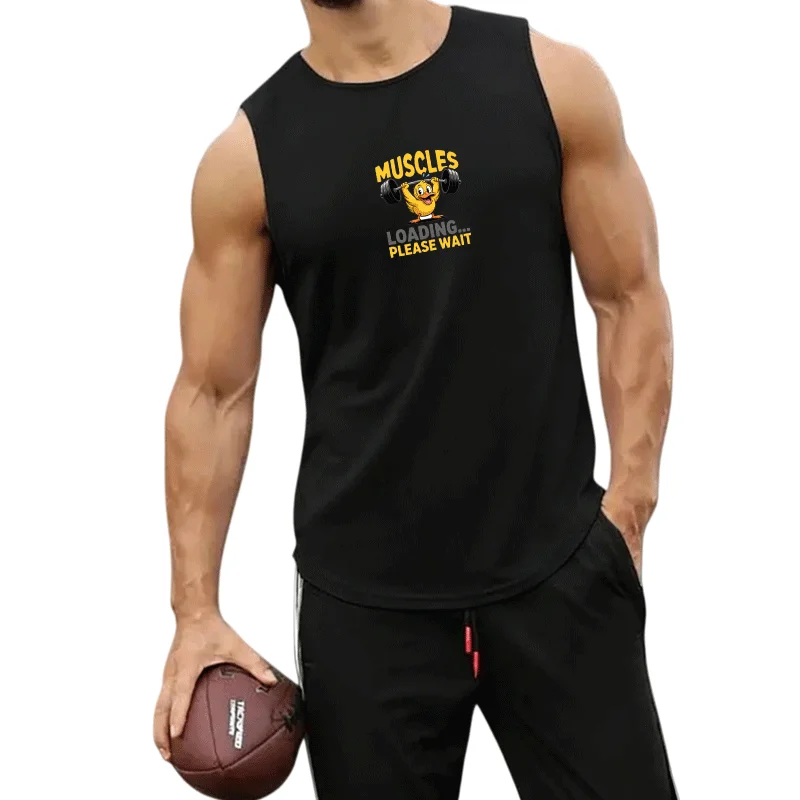 Sommerliches, atmungsaktives, schnelltrocknendes ärmelloses Oberteil und Shorts-Set für Herren. Geeignet für den Einsatz während Fitnessübungen und beim Laufen.