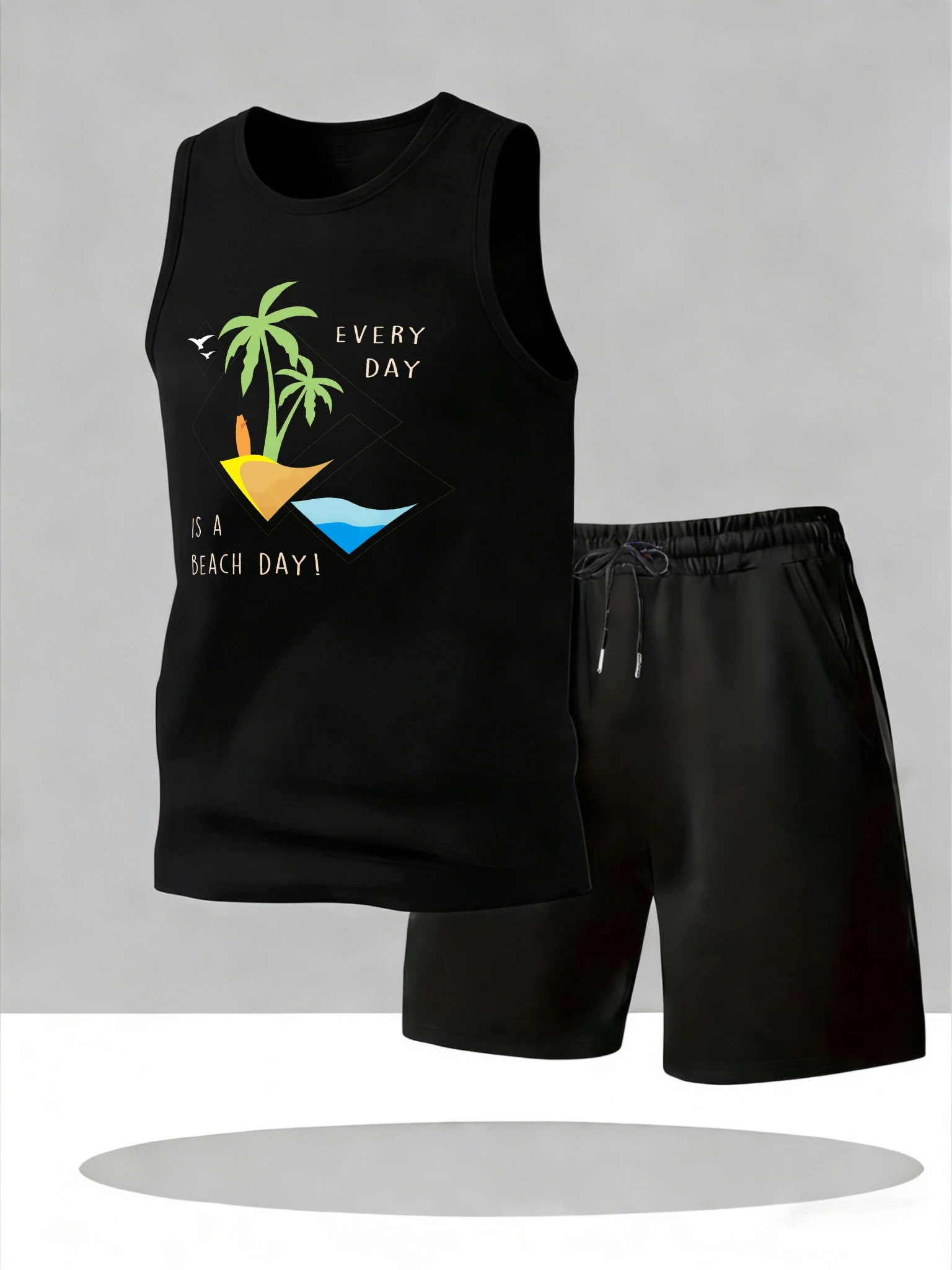 Herren-Tanktop-Sets 2026 Sommer Dünn Schnelltrocknend Rundhals Strand Zweiteilige Sets Y2K Trainingsanzüge Strand-Sport Übergroß Atmungsaktiv