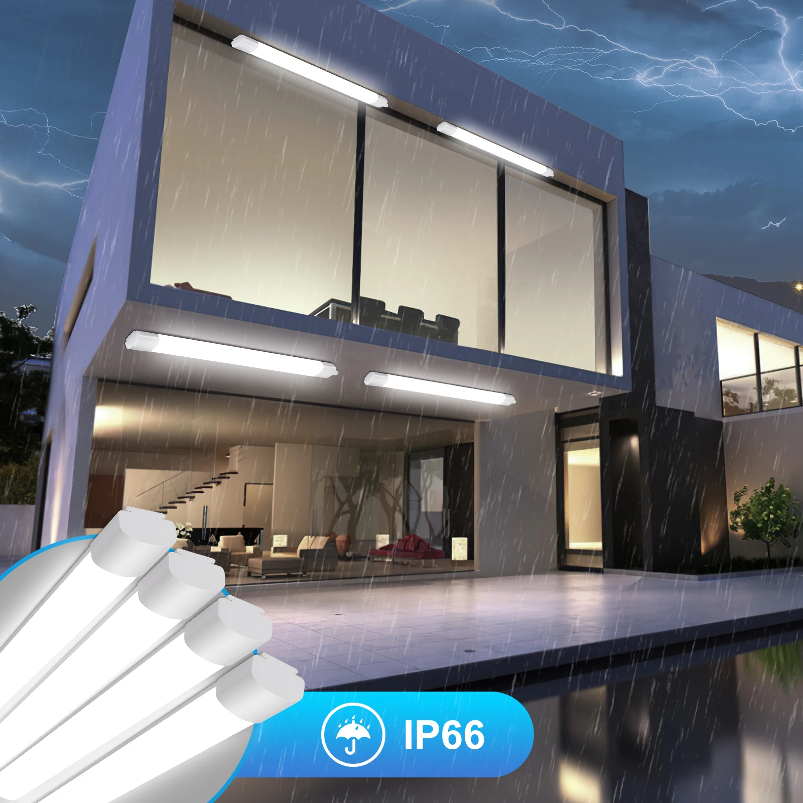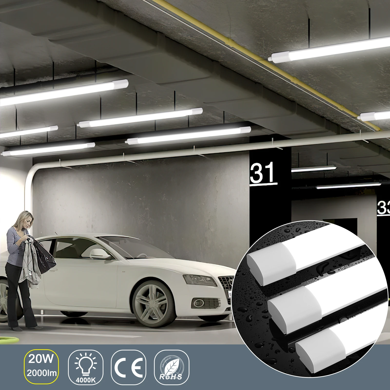 2PCS 120cm LED Kellerlicht LED wasserdicht Lattenlicht 45W 5400LM 4000K Neutralweiß, verknappbare Deckenleuchte, IP65 wasserdicht für den Außen-/Innenbereich
