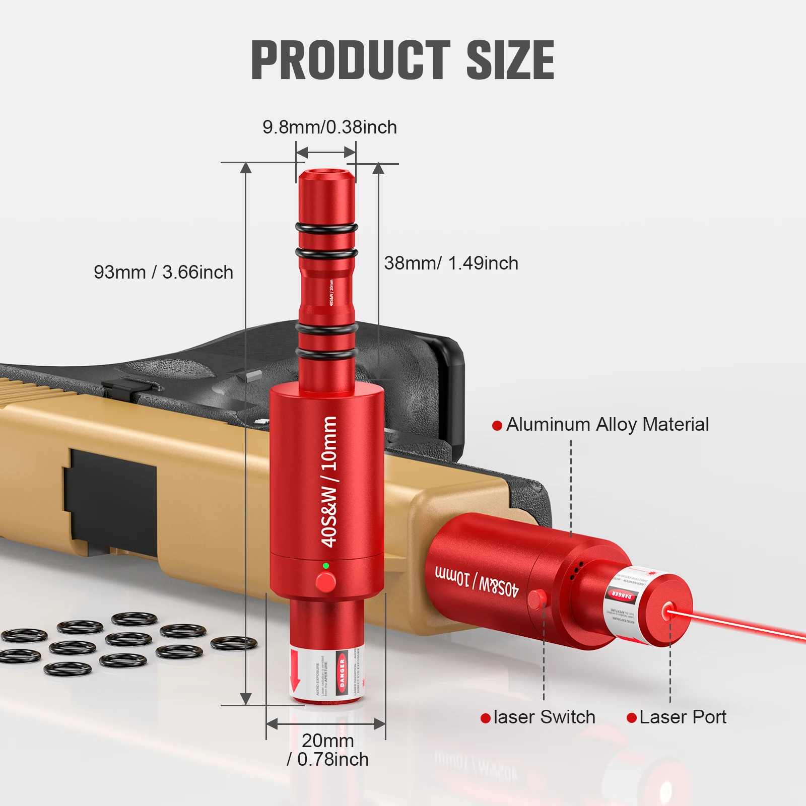 Bore Sight Cal.40S&W Laser Sight Red Dot Boresighter mit 3 Batterien.