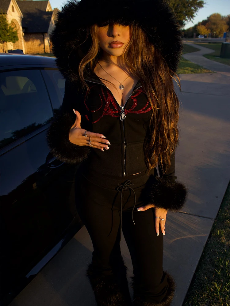 Gemütliches, Trendiges Damen-Zweiteiler-Set mit Fleece-Futter, Kapuzenpullover mit Taschen-Design und Jogginghose, Warmes, Locker Sitzendes, Bequemes Lounge- und Aktiv-Outfit