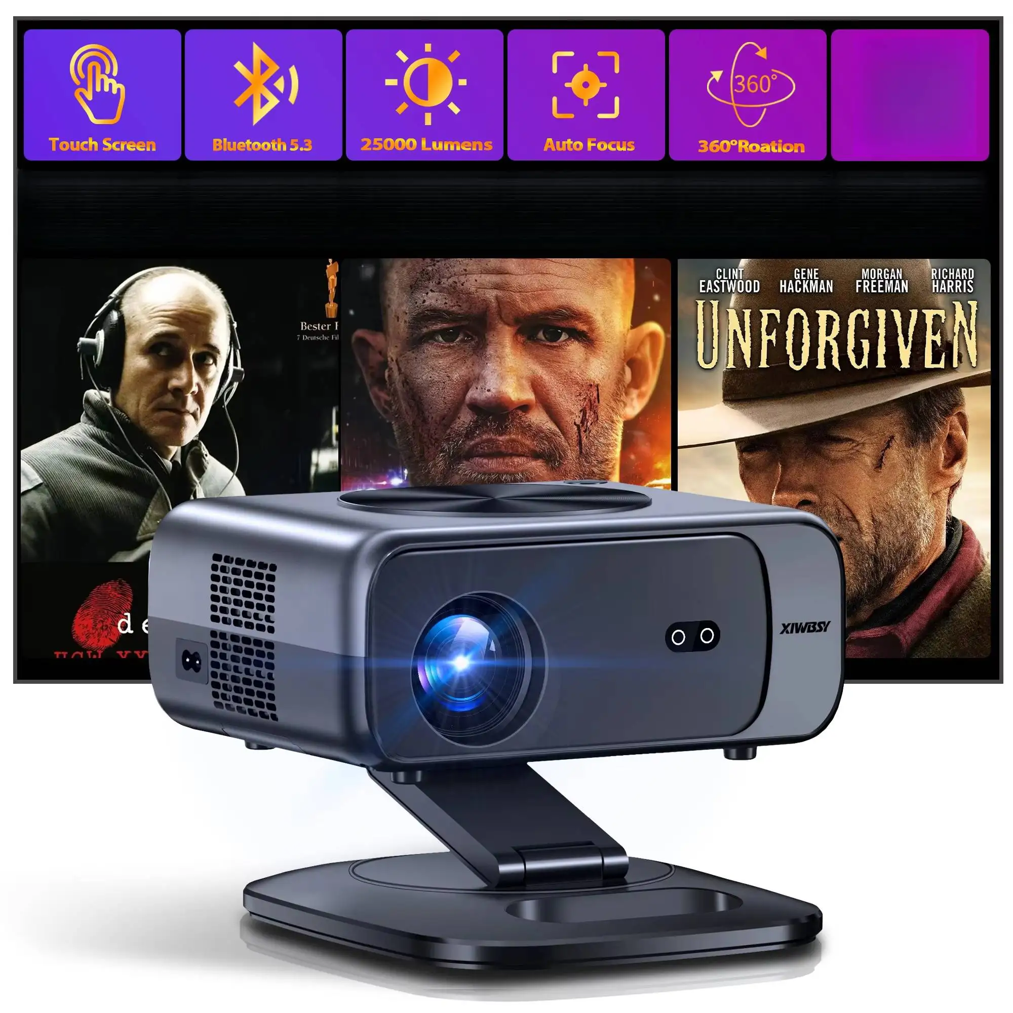 XGODY Gimbal 3 Projektor 4K Wifi6 Android Mini Beamer 300 ANSI Dual WIFI BT5.4 1280*720P Heimkino Outdoor Tragbare