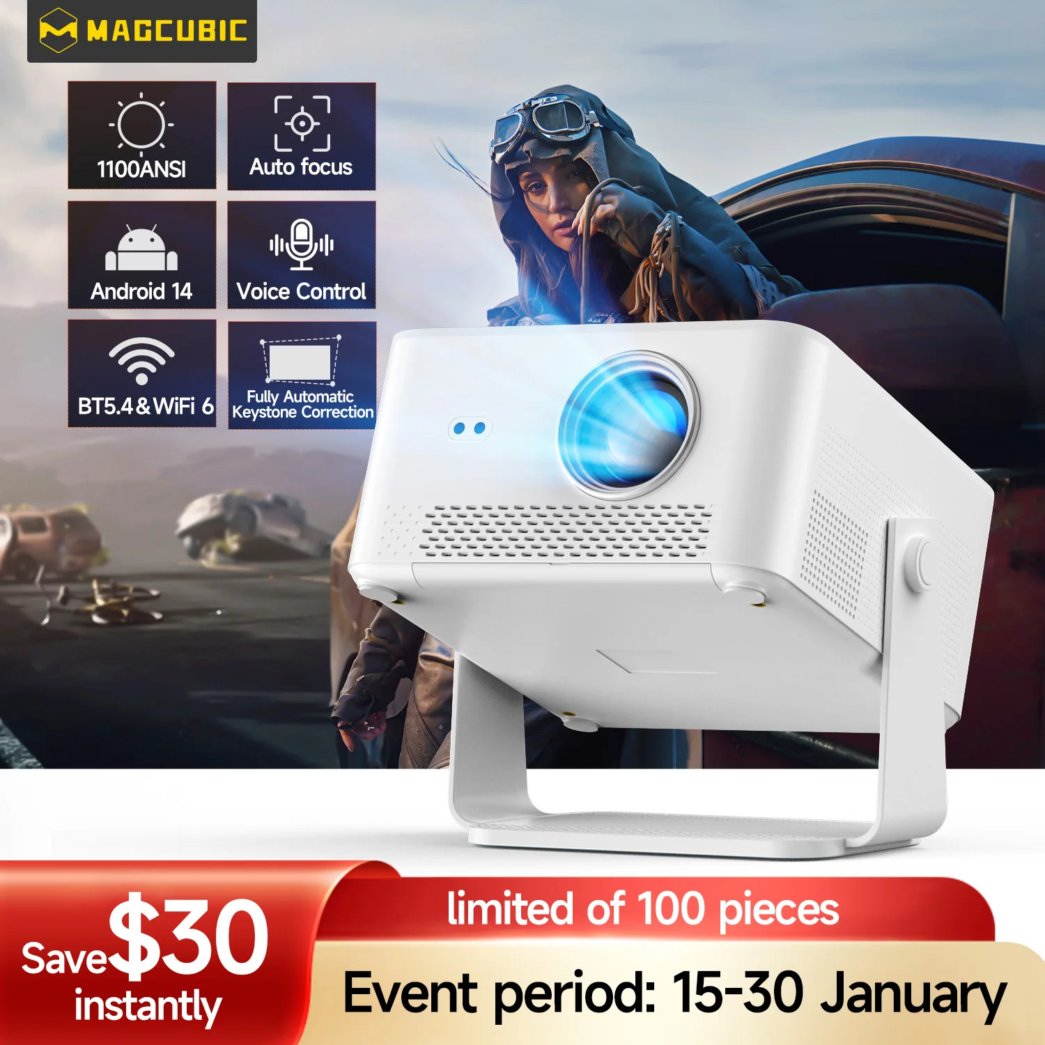 Magcubic HY450MAX 1100 Ansi LED Native 1080P Projektor Android 14 Beam 8K Beamer Wifi6 Film Heimkino Sprachsteuerung