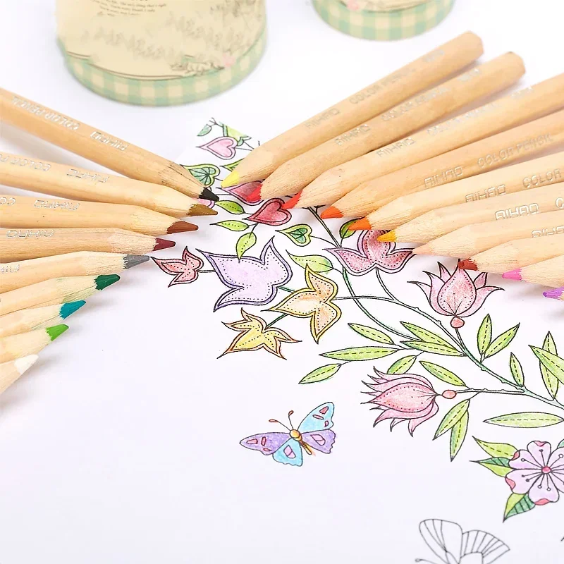 12 farbige Holz-Zeichenstifte, bunte Bleistifte für Kinder und Erwachsene, Malbuch