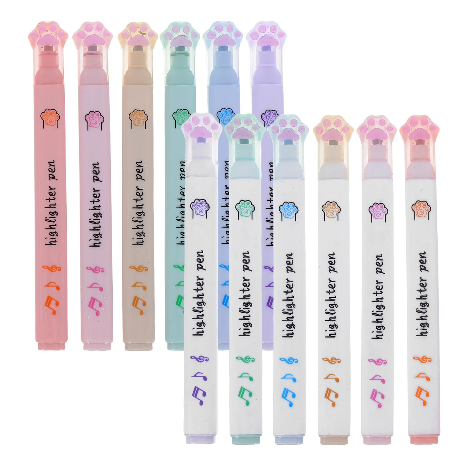 12 Stück niedliche Textmarker in Katzenpfotenform, leuchtende fluoreszierende Farben, glatte, auslaufsichere Tinte für Studenten, Kinder, Planer