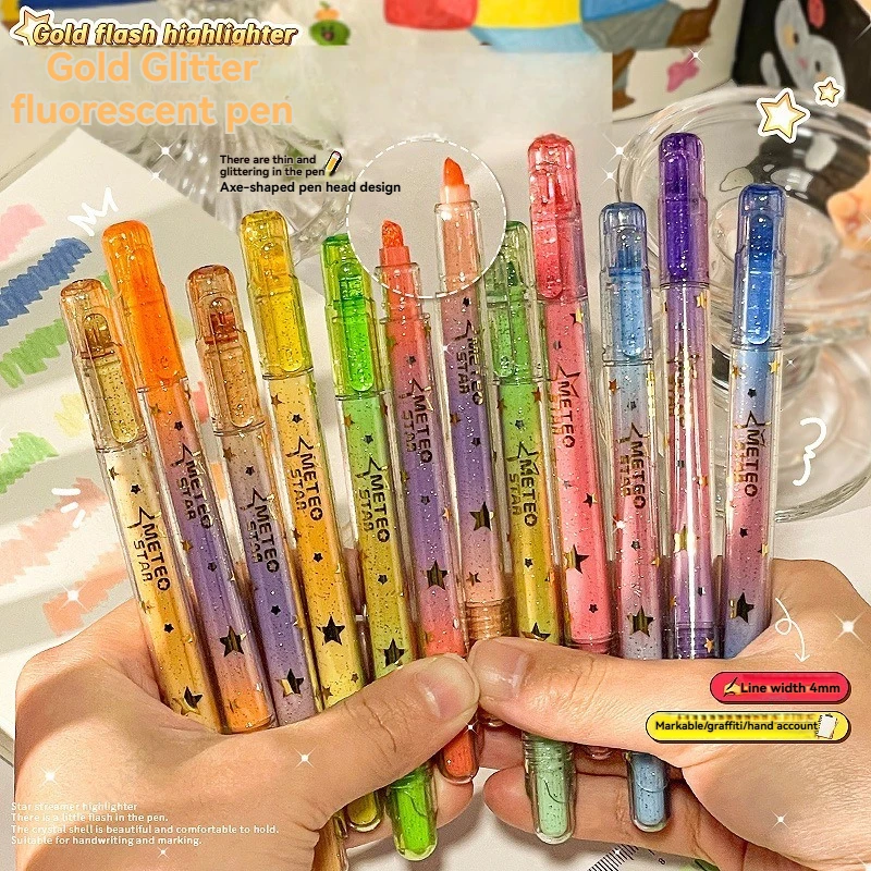 4 Stück Farben Textmarker Set Glitzer Textmarker Marker Kawaii Schreibwaren Schulanfang für Mädchen Studenten Pastell