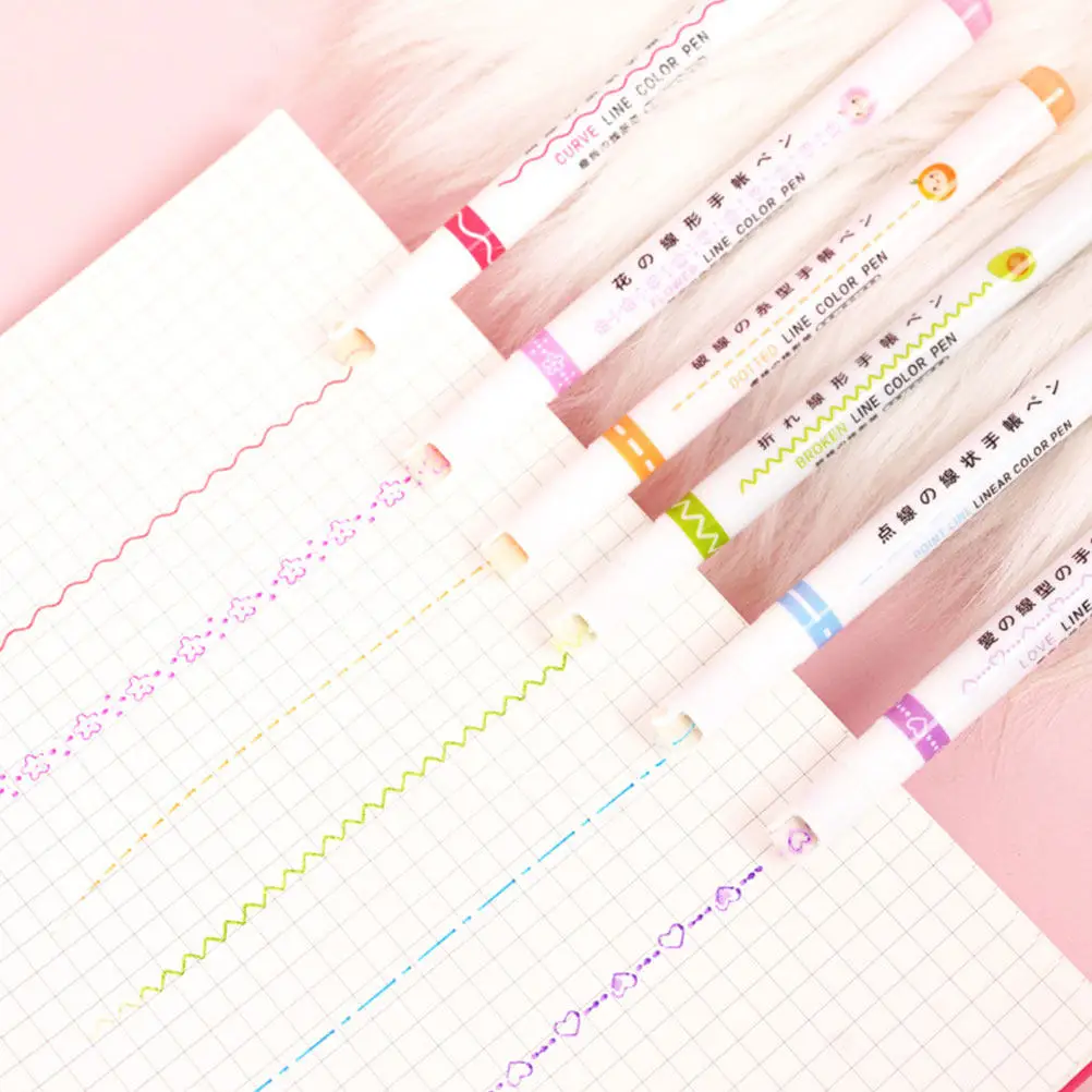 6-teiliges Niedliches Kawaii Textmarker-Set, Linearfarbstifte, Schnelltrocknende Glatt Schreibende Markierstifte für Schulprojekte, DIY-Basteln und Zeichnen