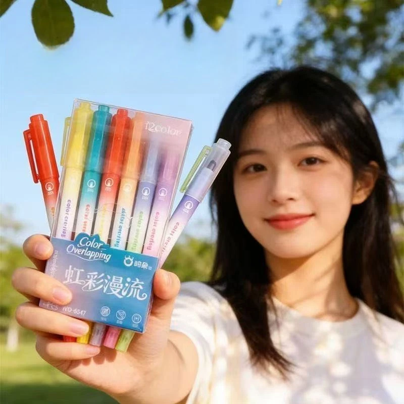 4PCS Highlighter Doppel Kopf Marker Stift Hochwertige Farbverlauf Student Marker Nette Textmarker Schreibwaren Versorgung