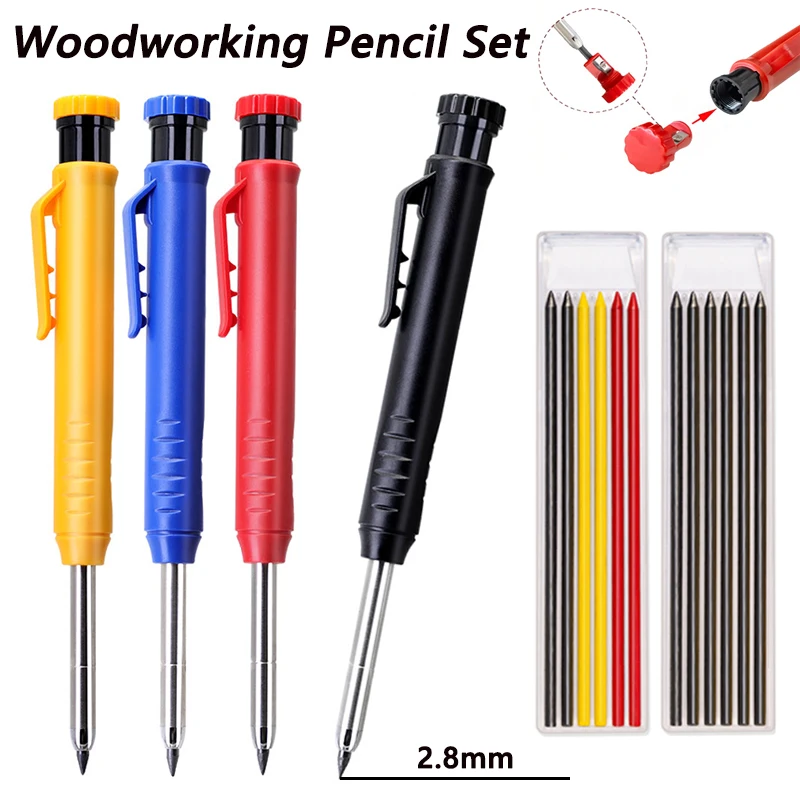2,8 mm langer, langköpfiger Zimmermannsbleistift-Set mit Ersatzminen, für die Markierung von tiefen Löchern in Holzarbeiten und architektonischen Anwendungen