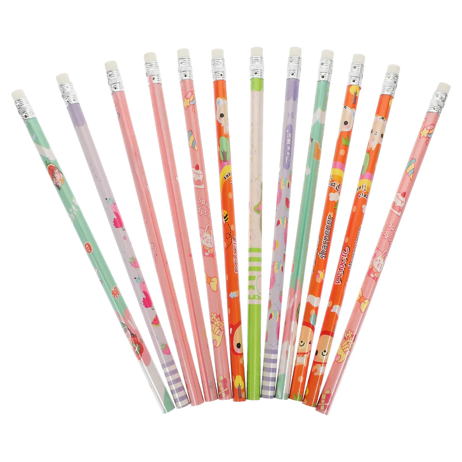 12 Stück Holz-Zeichenstifte mit starker Spitze, Cartoon-Radiergummi, Schreibstifte für Schüler, Schule, Klassenzimmer, kreativer Spaß, Kindergeschenke