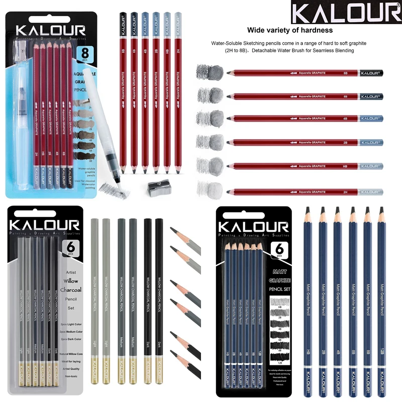 KALOUR 8-teiliges professionelles Aquarellstift-Set mit löslichem Graphit, 2H-6B Künstler-Skizzierset, ideal für Aquarell, Malerei