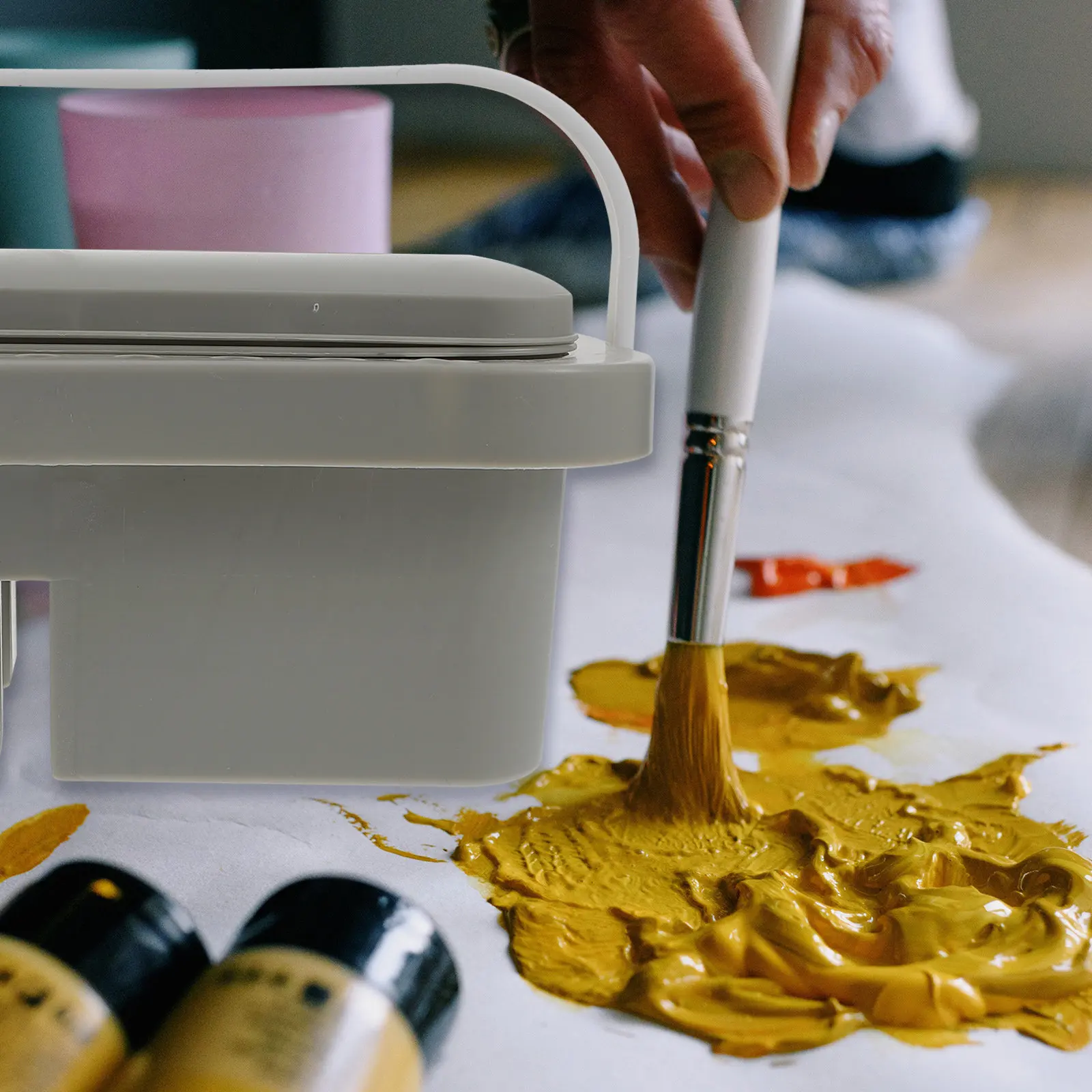 2 Stück Ölpastellfarbenbehälter, hochwertiger Pinselwaschbehälter aus Metall zum Reinigen von Malutensilien, Pigmentaufbewahrung, kompaktes Design, leicht zu reinigen