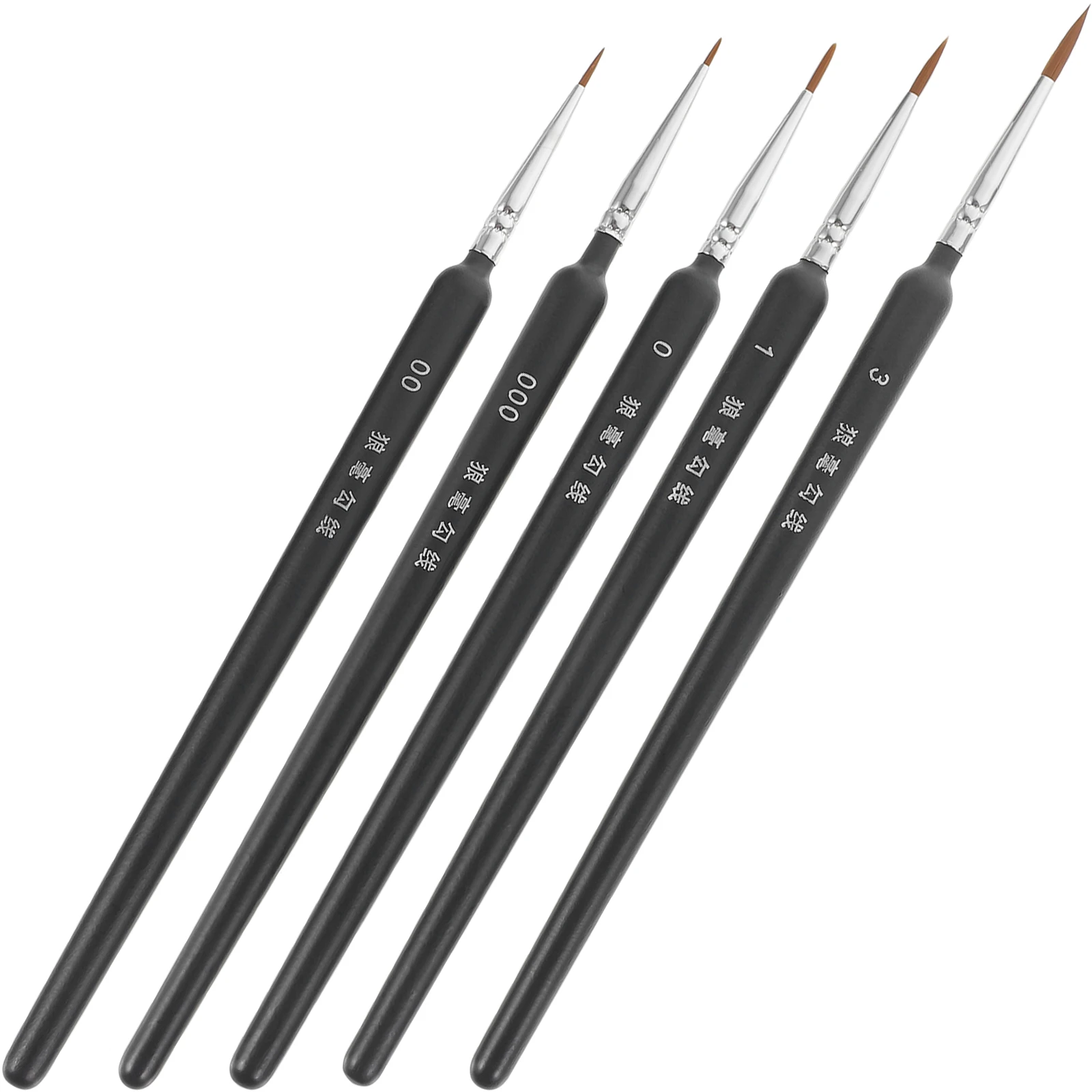 5-teiliges Pinselset mit Wolfshaar-Detail, Größen 000 00 0 1 3, leicht zu greifende Griffe, feine Detaillierung, Malerei, Miniatur-Kunstbedarf