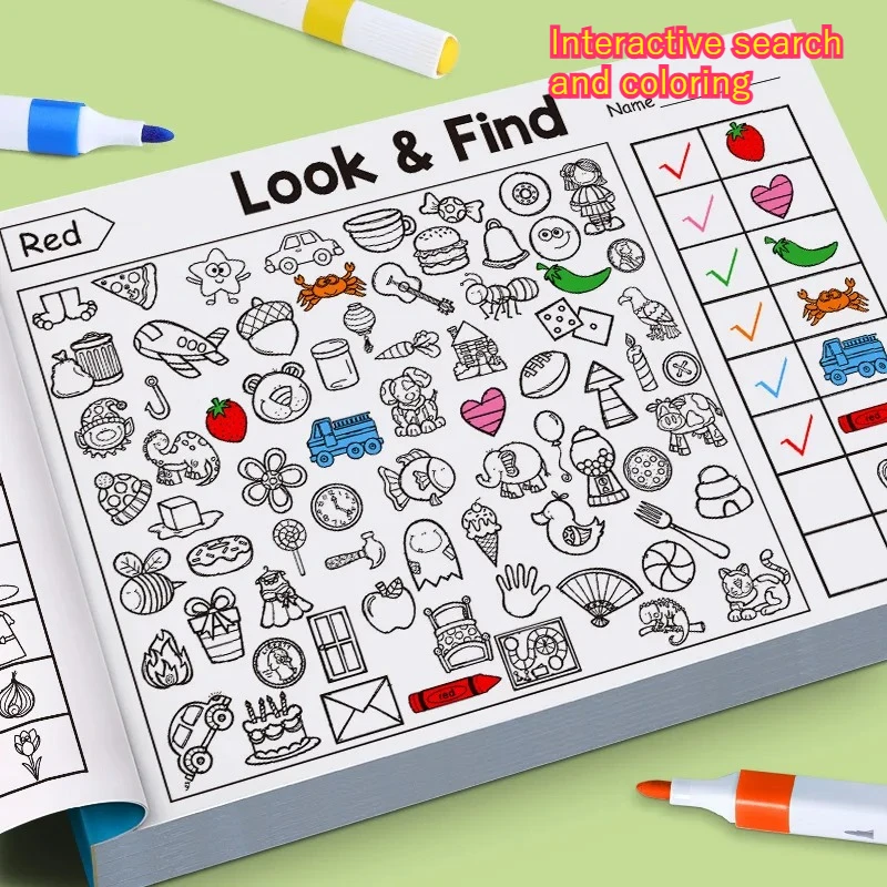 Suchspiel für Kinder, Verbessert die visuelle Wahrnehmung, Lustiges Malbuch, Fokus und Aufmerksamkeit, Handschrift-Übungsbuch