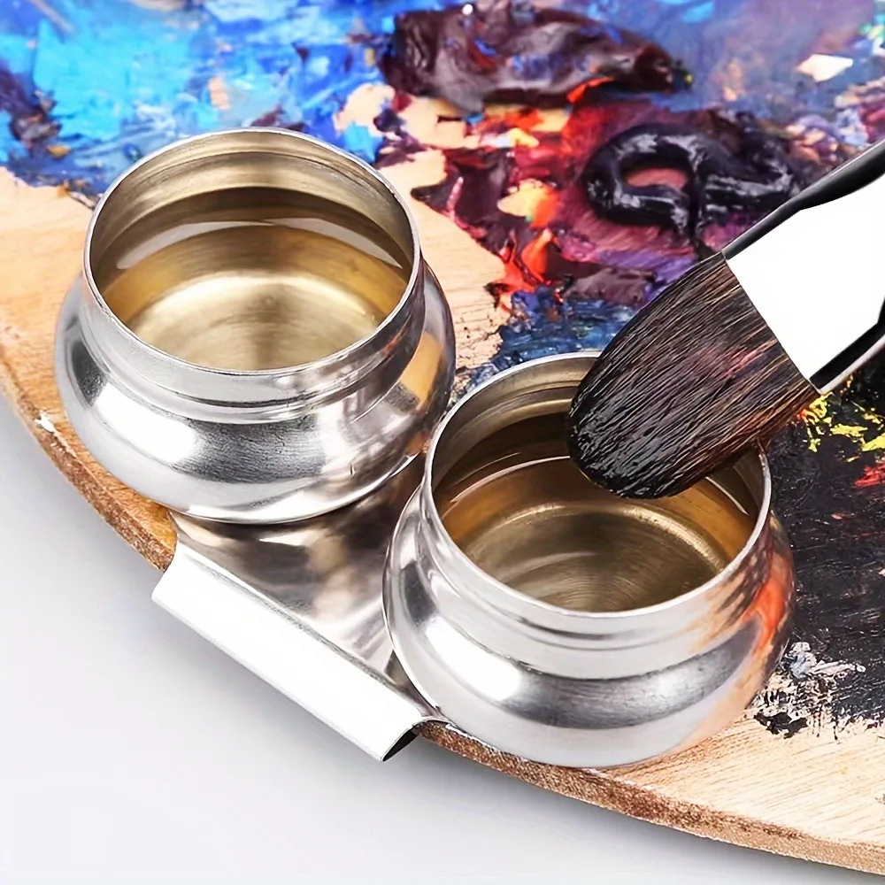 1 Edelstahl-Farbpallettenbecher mit großem Mundstück und Doppelbehälter, mit Schraubverschluss und Clip, Stiftwaschbehälter