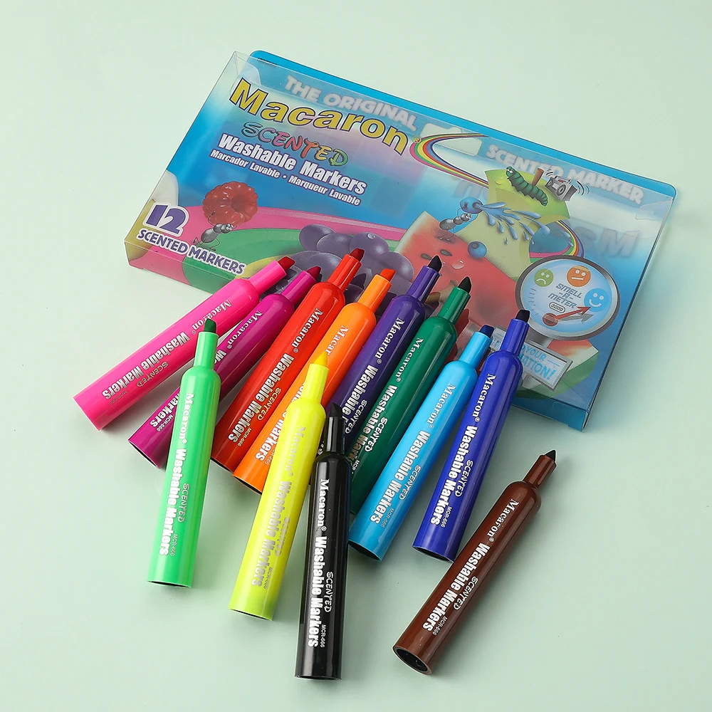 12 Stück waschbare Fruchtduftmarker, ungiftig, für Kinder, Kunstbedarf mit verschiedenen fruchtigen Düften, leicht zu waschen von Haut und Kleidung