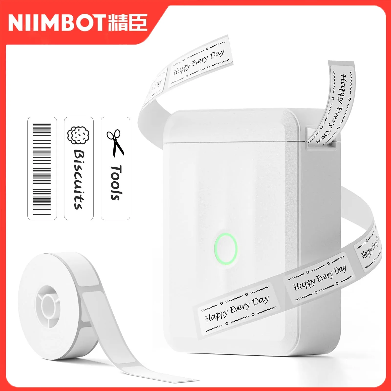 Niimbot Weißes Thermoetikett 20–50 mm für B1/B21/B3S Mini-Drucker, selbstklebender wasserdichter Aufkleber, UV-Papier für Tag-Preisschildhersteller