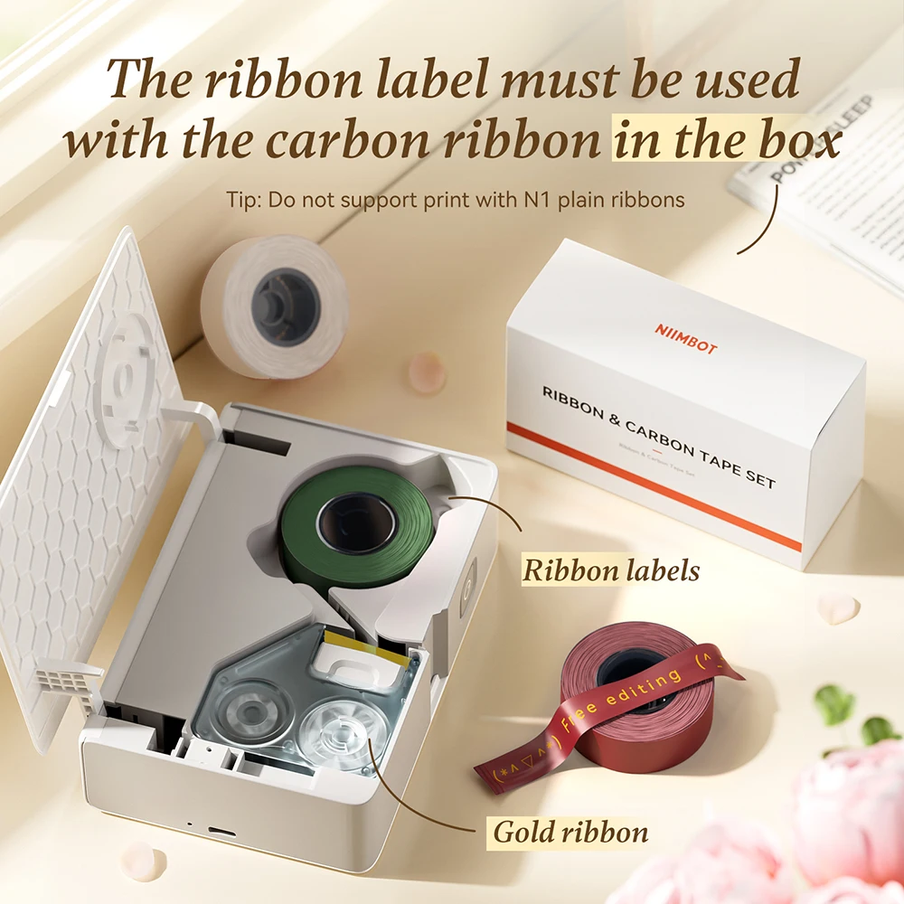Niimbot Mini Satinband-Drucker für DIY-Kunsthandwerk, Geschenkverpackung, Farbband-Etikettiermaschine für Partydekoration