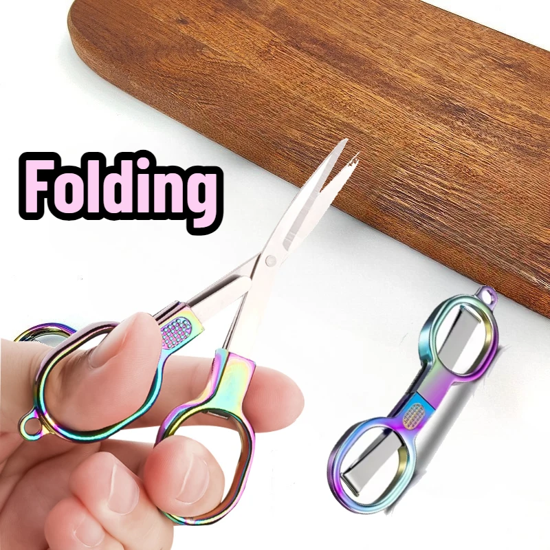 1 Stück Klappbare Schere, Regenbogenfarben, kompakte Präzisions-Bastelschere, scharfe Edelstahlklingen, tragbares Reise-Schreibwarenzubehör