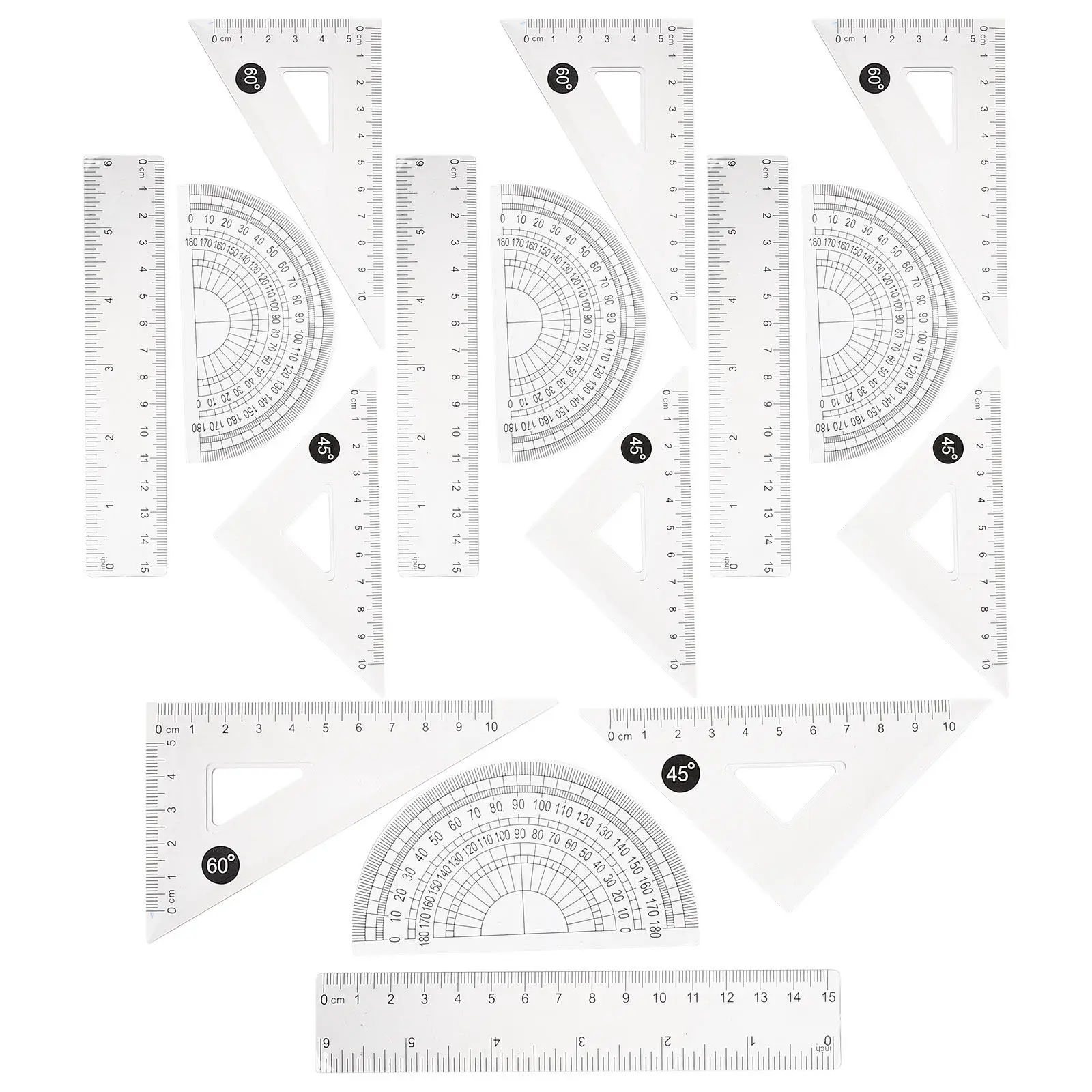 9-teilige Zeichnungsvorlagen, die geometrische Lineale misst, Kunststoff-Entwurfslineale für technisches Gebäude, Studium und Design
