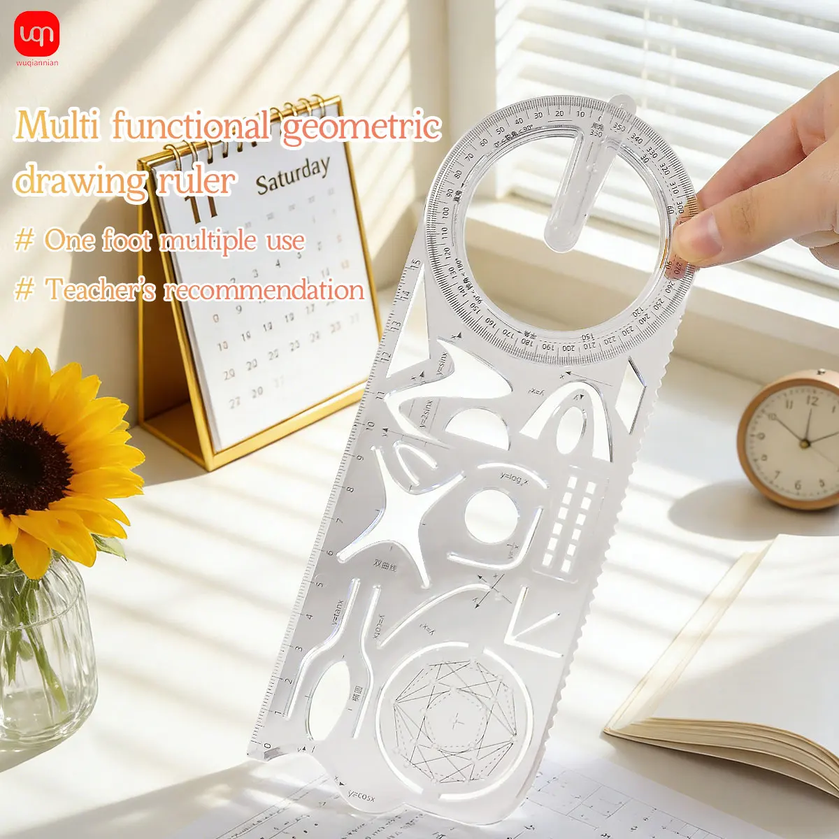 WQN-1PC Funktionswinkelmesser 360 ° Drehbares Geometrisches Dreieck-Lineal Messwerkzeug Oberschulversion Schreibwaren