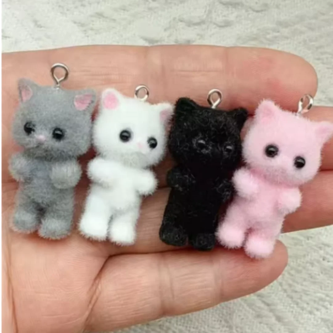 4 Stück Kawaii 3D Flauschige Beflockung Harz Katze Tier Charms Anhänger Bunte Schlüsselanhänger Halskette Anhänger DIY Handwerk Schmuckherstellung