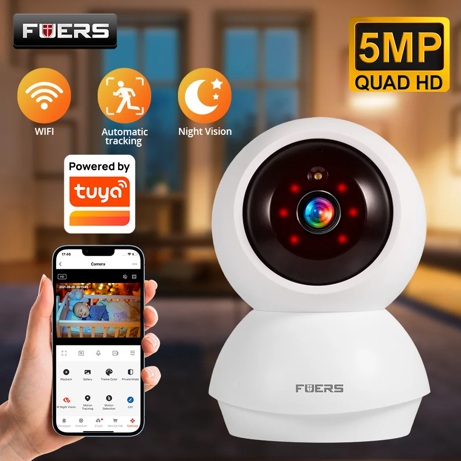Fuers 5MP WLAN-Kamera für den Innenbereich, kabellose IP-Überwachungskamera mit KI-Erkennung, kompatibel mit Tuya Smart Life APP, Sicherheits-Babyphone