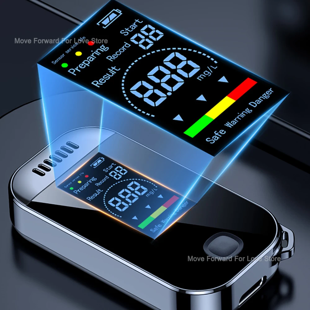 Professioneller Alkohol-Atemtester, Alkoholtester, Analysator, Detektor, Test, Schlüsselbund, Alkoholtester, Alkoholtester, Gerät, LCD-Bildschirm